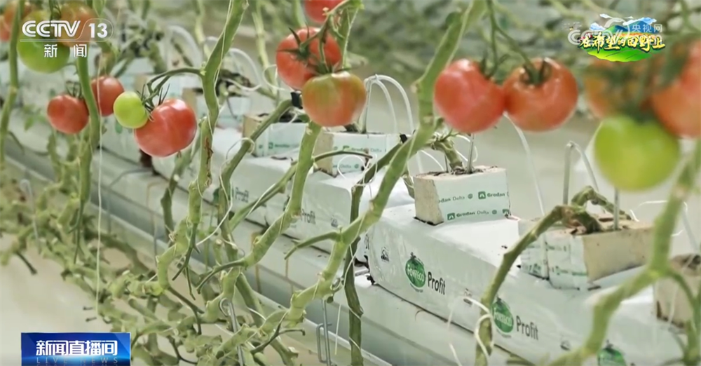 据领会,这里的番茄采用半封锁无土栽培手艺,用岩棉块和椰糠取代土壤育苗,并操纵熊蜂天然授粉。同时,每株番茄根部都固定着公用滴头,水肥一体化系统会按照传感器及时监测土壤湿度取养分,按需配比水肥。