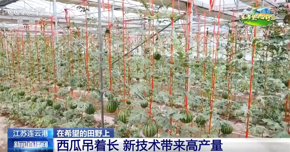 正在江苏连云港市,大棚西瓜连续进入采收期。不外这里的西瓜不是正在地上发展的,而是吊着长的。据引见,再有一周摆布的时间,这些“空瓜”即将大量上市,提前给消费者带来甜美享受。